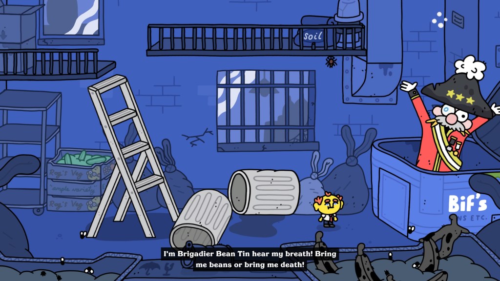 Much of my appreciation for the humour came from its distinctly British nature. Many of the games circumstances or jokes borrow heavily from the slapstick style of comedy show like Only Fools on Horses or Blackadder. The characters have overexaggerated features and personalities the emphasise certain British cultural tropes – like Brigadier Bean Tin the towns eccentric homeless man who has somehow earned the loyalty of his army of seagull soldiers.