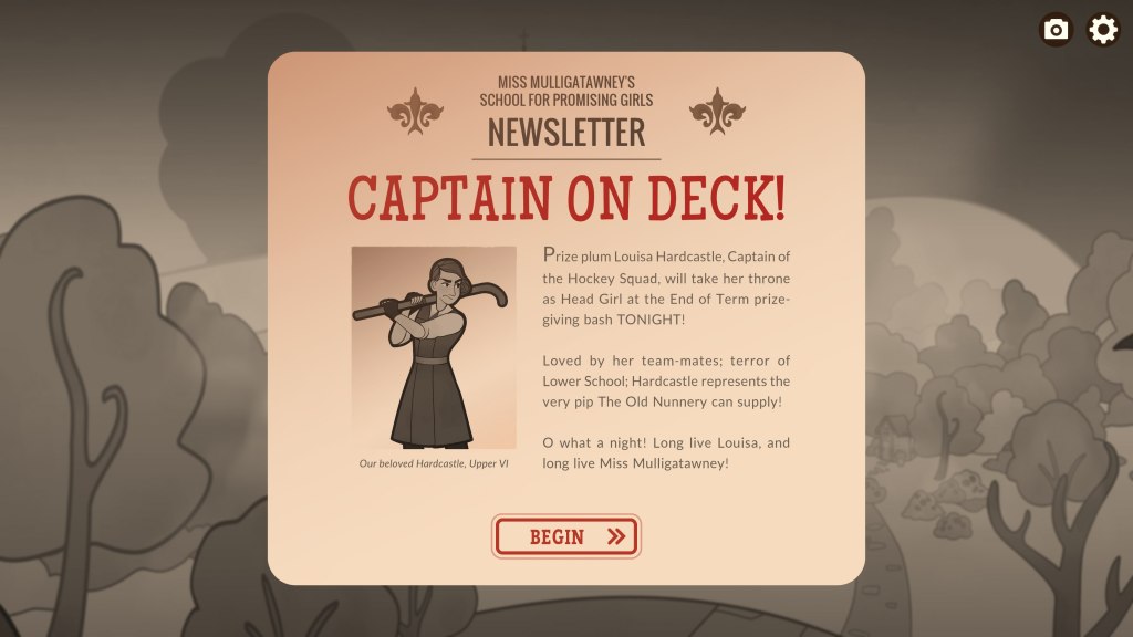 Expelled! is another game built on the time loop mechanic. At first glance, its all-girls private school setting doesn’t seem particularly ambitious. Verity, a scholarship student, from a working-class background finds herself on the business end of an expulsion, blamed for pushing an upper sixth student out the towers ornate stained-glass window. And not just any upper sixth student: Louisa Hardcastle, the beloved captain of the hockey team and soon to be head girl.