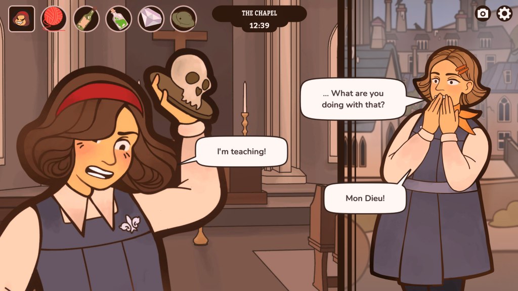 Initially, resets are quick, as you uncover evidence planted to place you at the scene of the crime. Like any good time loop game, knowledge is power. The more you know, the more you can influence. Piecing together a routine prevents your early expulsion, affording Verity time to interview and cross examine her peers. You are introduced to an eclectic cast of characters, who all fill a stereotypical public school role. But at their core each character is an exaggerated representation of a social class or underrepresented minority, with Verity filling the role of working-class outcast. Everyone has a motive. Everyone has something to hide. History and relationships that can be explored and exploited to decipher the puzzle.