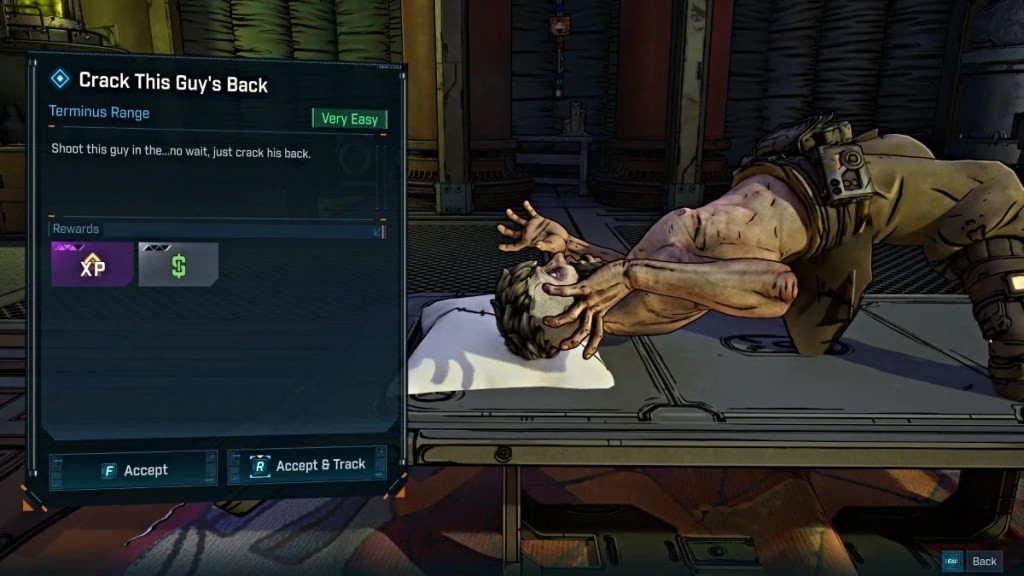 Crack Ma Backy is one of the many NPCs scattered across Kairos. He isn’t a war hero, a bandit, or a victim of the Timekeeper’s oppression. He simply wants relief from his back pain. The mission is framed as a throwaway joke, another absurd detour in a world defined by violence and suffering.