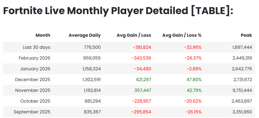 Epics latest cuts were tied, by the company’s own account, to a downturn in Fortnite engagement that began in 2025. CEO Tim Sweeney said Epic was “spending significantly more than we’re making” and needed major cuts, alongside more than $500 million in other savings.