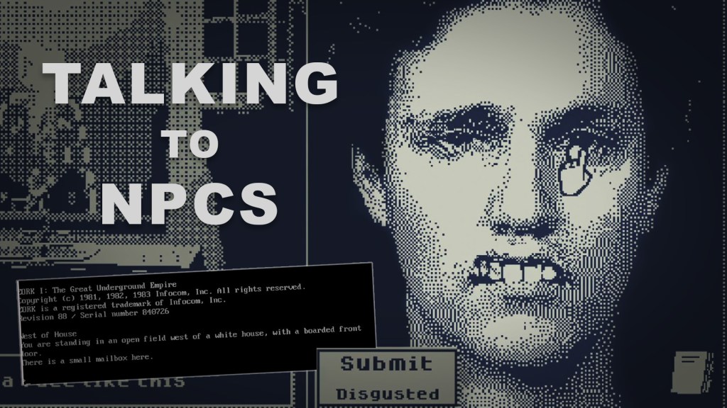 Unlike Zork, rather than simply studying what the NPC says, you are forced to investigated how it says it – how it addresses you, how it refers to others, and what kinds of values are encoded in its language. Now, the way the NPCs speak no longer feels scripted, nor does it feel limited by the hardware and code it was build on. Increasingly, it resembles the messy, contextual, and expressive way that people actually speak.