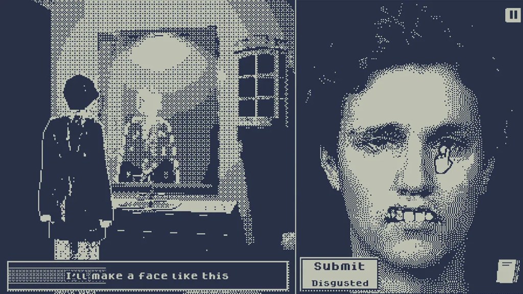 You do not select a line from a dialogue tree, wheel, or menu. You speak by dragging pieces of Will’s face into something that resembles emotion. You need to physically construct a smile, and fear, and confusion, and sincerity, and indifference. Every exchange becomes an uneasy act of puppetry. You are not choosing what to say so much as trying to manufacture a believable rendition of feeling.